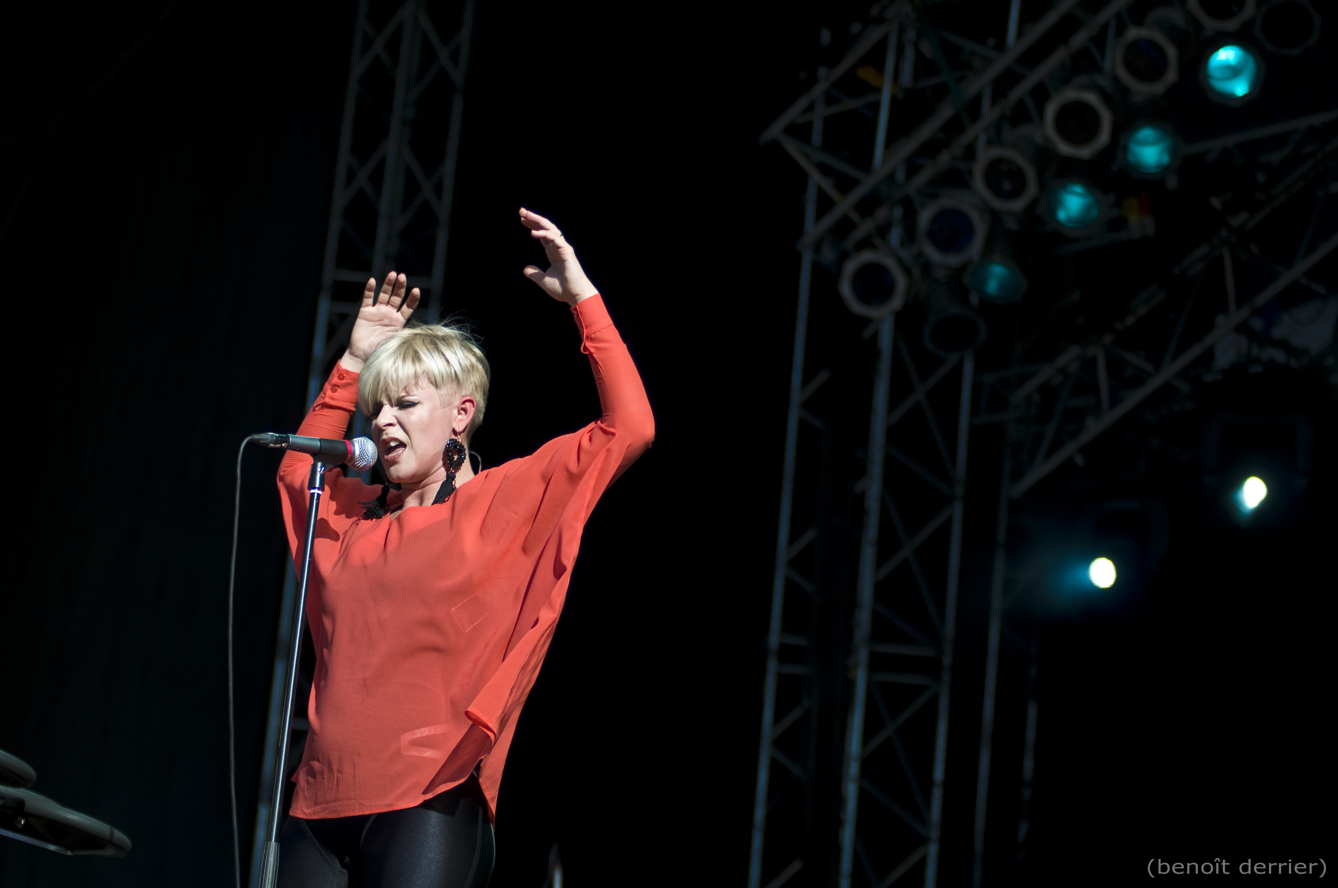 She cajoled the crowd to join her as she danced uninhibitedly, twirling in circles like a whirling dervish to the throbbing synthesizers and thumping percussion being pumped out by the two electric drummers and two keyboardists flanking her on stage.